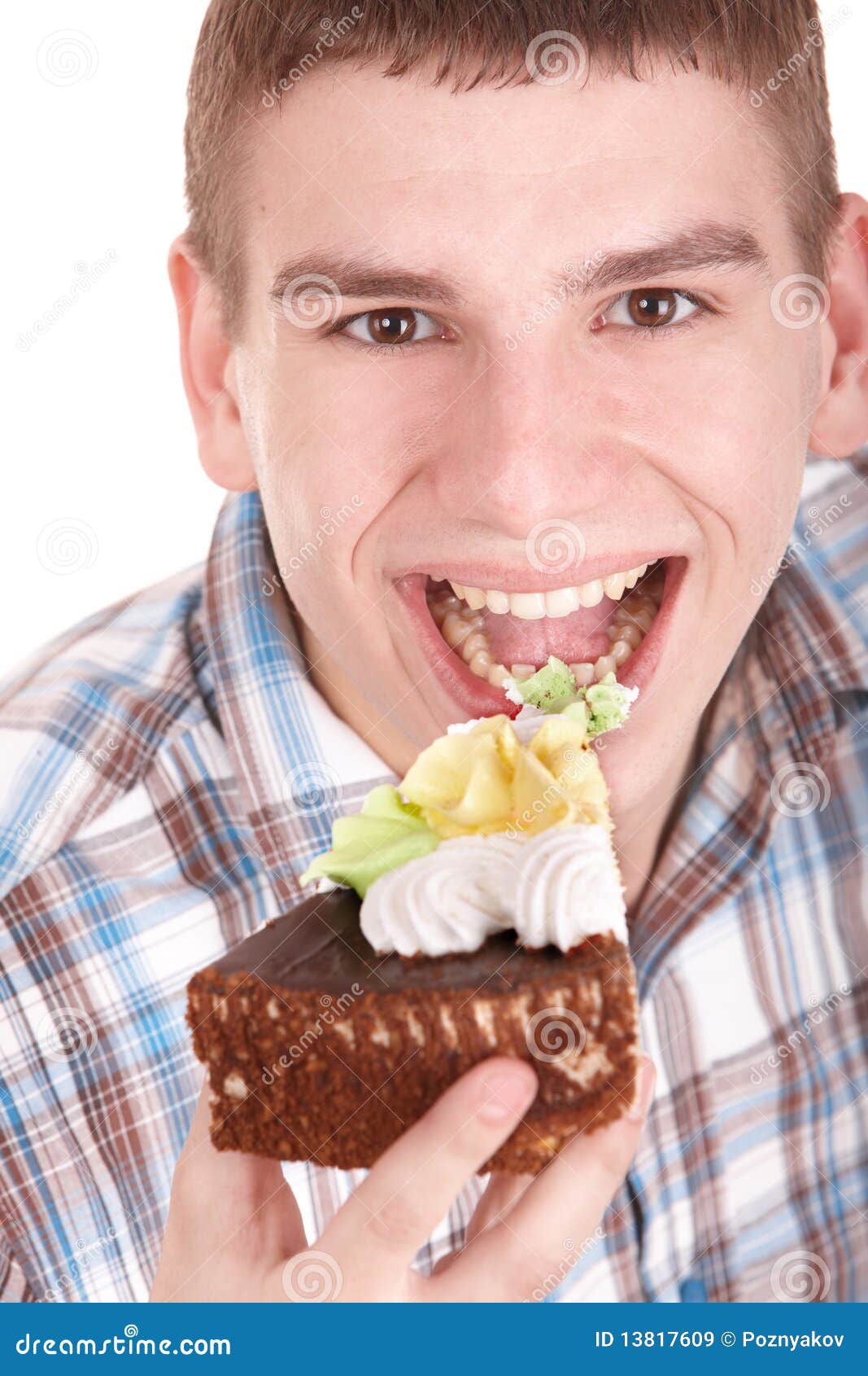 Face Of Man Eating Cake. Stock Image. Image Of Smile - 13817609